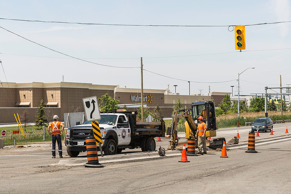 TM3 Inc. was responsible for the installation of both temporary and permanent traffic signals on this project. The work included the installation of pole bases, conduit, traffic signal and street lighting poles, arms and fixtures, as well as traffic and pedestrian signal heads. We were also responsible for the installation of the loop detection system along Hwy 401 between Trafalgar Road and First Line.